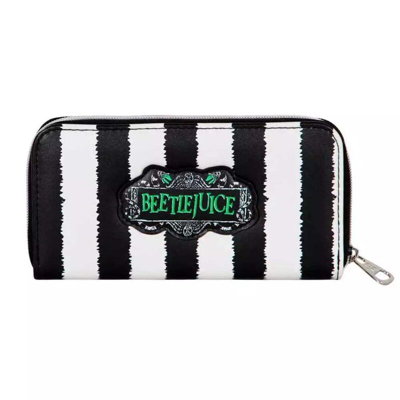Producto con licencia oficial de Beetlejuice, diseñado para fans del cine clásico. Incluye compartimentos interiores para tarjetas, billetes y monedas.