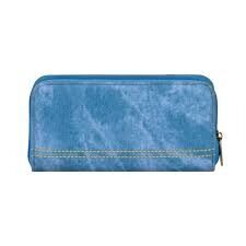 Billetero rectangular con cierre de cremallera perimetral, confeccionado en material sintético de tacto suave y fácil mantenimiento. Ofrece espacio interno para billetes, tarjetas y monedas.