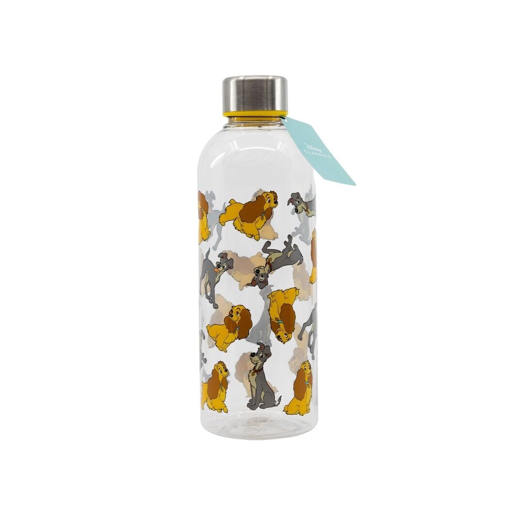 Botella térmica con diseño de Lady y Golfo. Decoración en tonos suaves con motivos románticos y tipografía clásica.