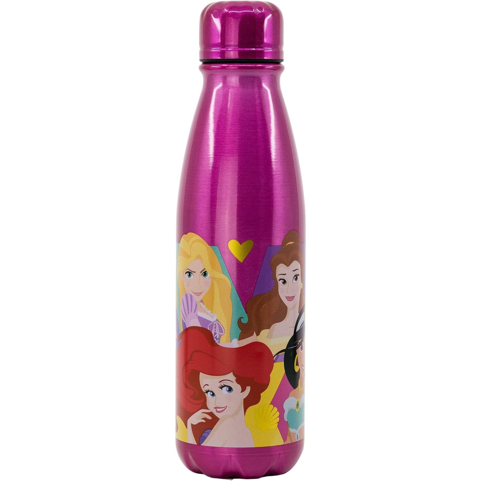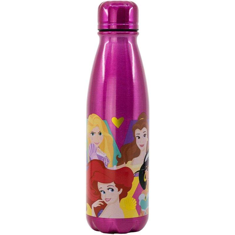 Botella infantil decorada con las Princesas Disney. Diseño brillante con ilustraciones de personajes clásicos como Ariel, Rapunzel y Bella.