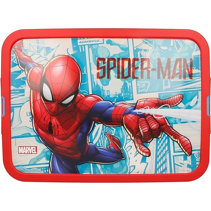 Caja organizadora con diseño basado en Caja Click 13 L Spiderman Comic Book, pensada para almacenar objetos personales con estilo.