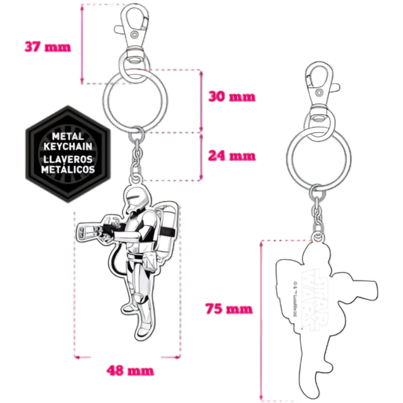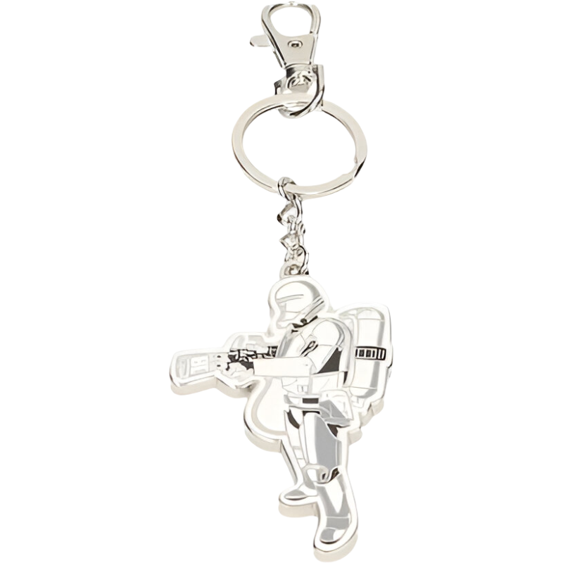 Este llavero de Flametrooper Metal Star Wars Ep7 ofrece una representación detallada del personaje o símbolo temático.