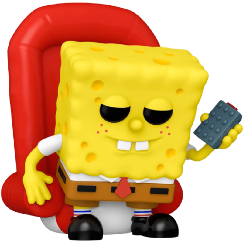 Figura coleccionable Funko POP! inspirada en el famoso meme de Bob Esponja, representando al personaje sentado en su sillón rojo con el mando a distancia en mano y una expresión relajada. Esta edición pertenece a la línea POP! Animation y está numerada como la 1752.