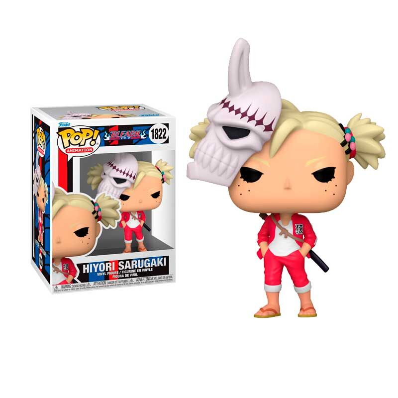 Figura coleccionable Funko POP! de Hiyori Sarugaki, personaje del popular anime y manga Bleach. Este modelo número 1822 muestra a Hiyori con su actitud desafiante característica, vistiendo su uniforme rojo y portando su máscara hollow inclinada sobre la cabeza, símbolo de su condición como Vizard.