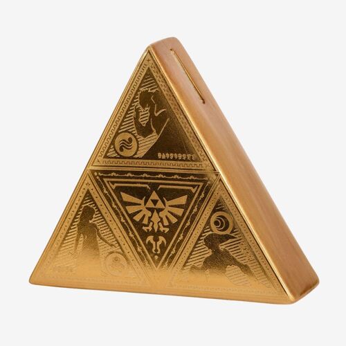 Hucha decorativa con diseño temático de Hucha Zelda Triforce, ideal para fomentar el ahorro de forma divertida.