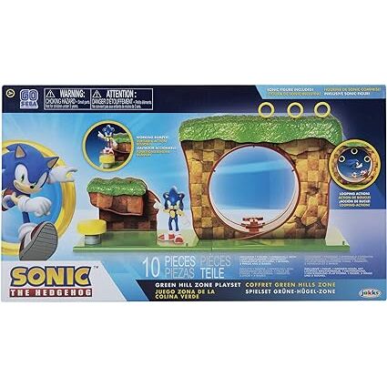 La Colina Verde de Sonic se reconstruye en este juego de construcción con rampas, anillos y personajes. Piezas coloridas y fáciles de encajar.