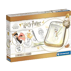 Pizarra luminosa temática de Harry Potter. Permite escribir o dibujar con luz sobre la superficie, utilizando marcadores especiales incluidos.