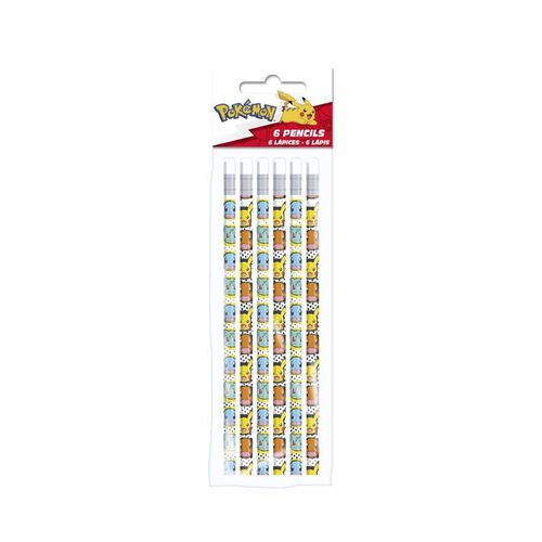 Set de lápices decorados con personajes Pokémon. Incluyen goma de borrar en la parte superior con forma temática.