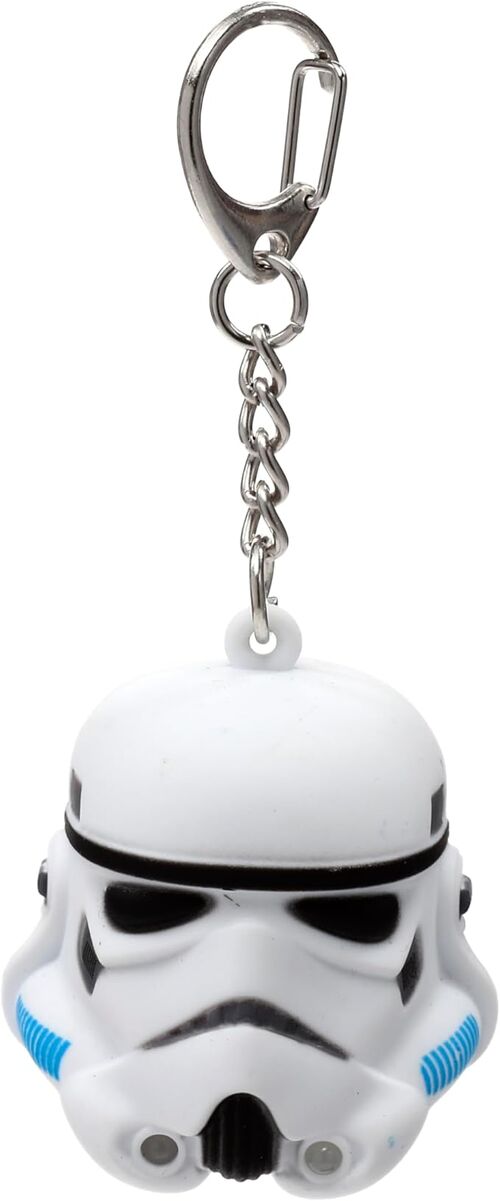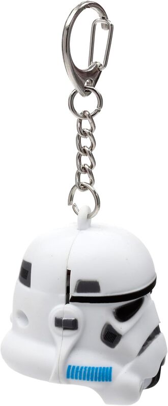 El llavero con luz Star Wars Stormtrooper combina accesorio decorativo y funcionalidad adicional. Su diseño reproduce el casco característico del soldado imperial en formato compacto.
