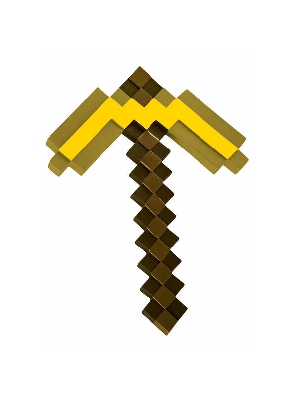 Pico dorado de Minecraft. Accesorio de juguete en plástico resistente con diseño pixelado característico del universo del juego.