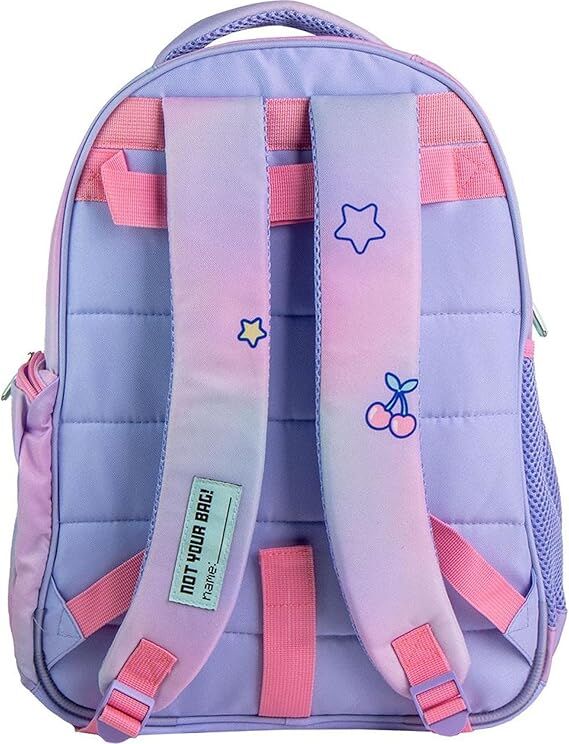 Con aproximadamente 42 cm de altura, ofrece capacidad suficiente para libros y material escolar. Incorpora compartimentos funcionales y tirantes ajustables que favorecen un transporte cómodo. La impresión mantiene fidelidad a la estética colorida del universo Disney.