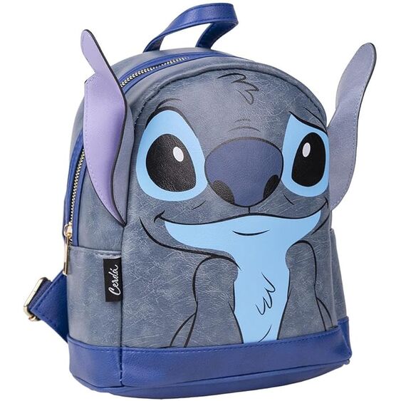 Mochila de moda con diseño brillante de Stitch, el querido personaje de Disney. Presenta una ilustración frontal sobre fondo con purpurina azul que aporta un acabado llamativo.
