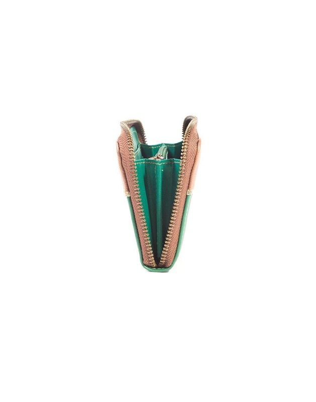 Ofrece una distribución organizada con múltiples compartimentos interiores, ideal para tarjetas, billetes y monedas.