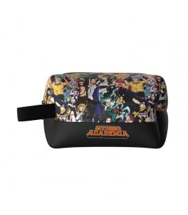 Neceser con diseño inspirado en My Hero Academia. Presenta gráficos y colores representativos de la franquicia en un estilo elegante.