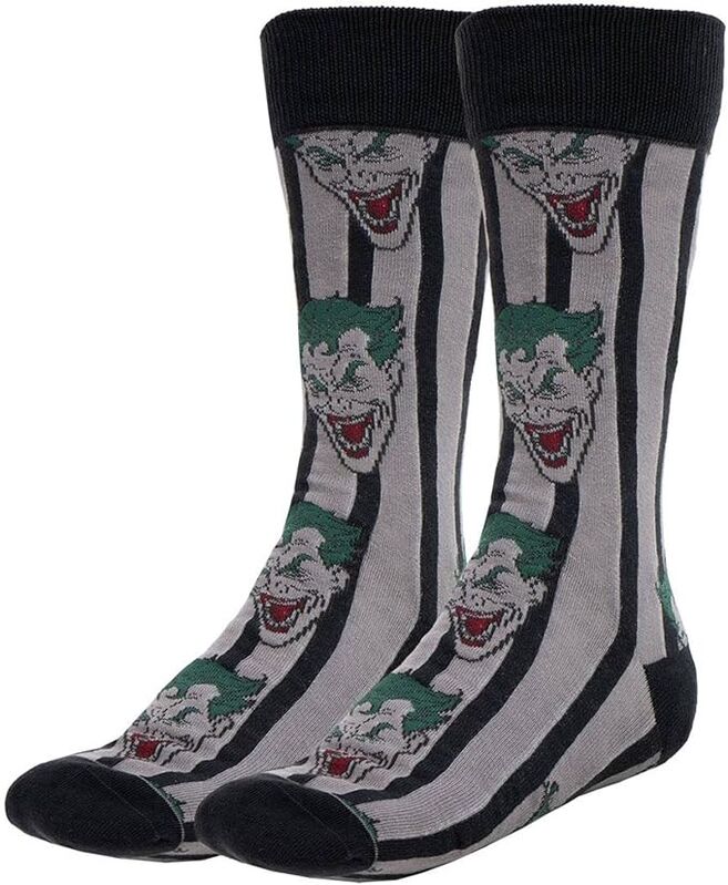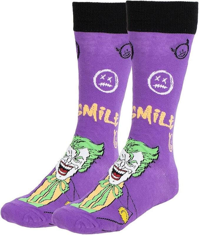 El pack de 3 calcetines Joker presenta diferentes diseños inspirados en el icónico villano de DC. Cada par incorpora gráficos llamativos y combinaciones de color distintivas.