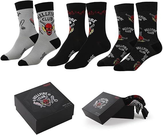 El Pack de 3 calcetines Stranger Things Hellfire es una opción práctica y temática para quienes desean incorporar a su vestuario diario un guiño directo a una de las series más icónicas de la actualidad. Inspirados en el Hellfire Club de Stranger Things, estos calcetines combinan diseño llamativo y comodidad en un formato pensado para el uso cotidiano.