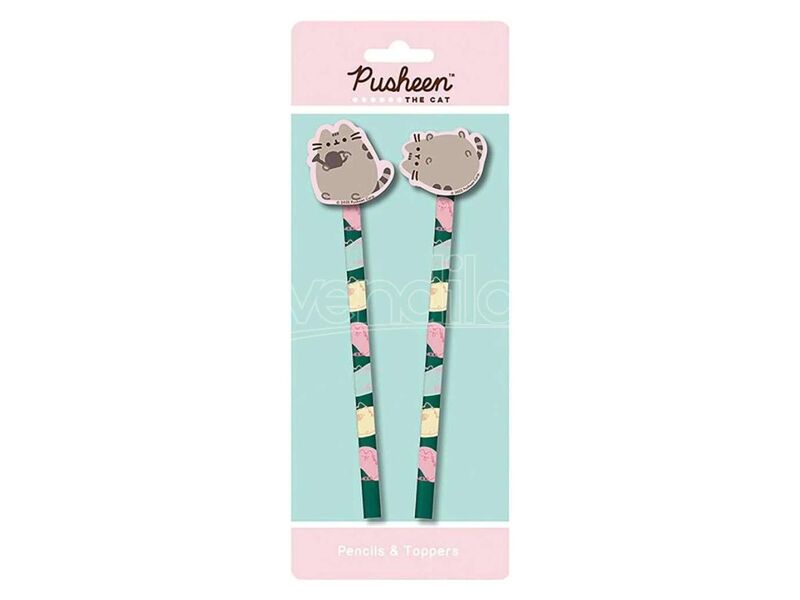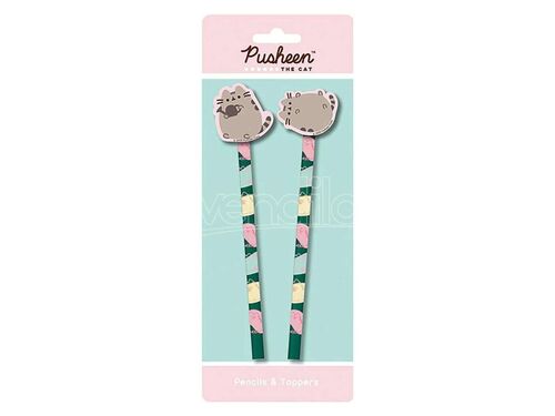 Pack de dos lápices con gomas decoradas con motivos de Pusheen Botanical. Diseño kawaii en tonos pastel y detalles florales.