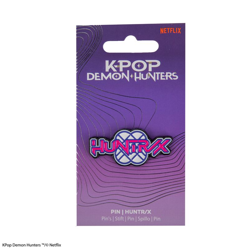 El pin metálico Huntr/X Logo es un accesorio coleccionable imprescindible para los fans de KPop Demon Hunters. Con una tipografía definida, detalles en capas y vibrantes acentos rosa y azul, este pin transmite la energía pura del grupo ficticio Huntr/X, protagonista de la película animada de los Cazadores de Demonios K-Pop.