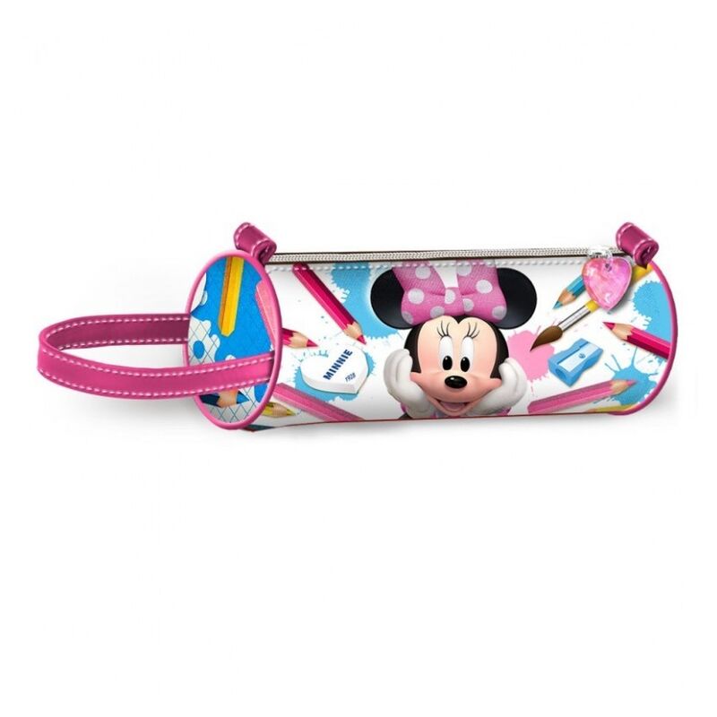 Estuche escolar decorado con ilustraciones originales de Mickey y Minnie. Su diseño destaca por una estética cuidada y detalles que evocan el universo visual de la franquicia.
