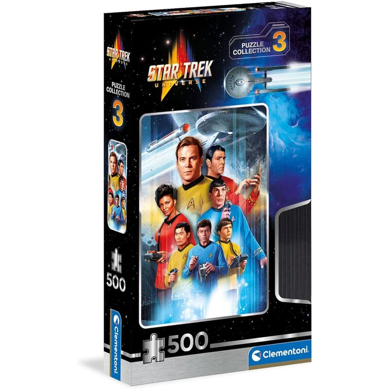 Este puzzle retro 500 piezas Star Trek ofrece imágenes icónicas de la saga espacial para fans y coleccionistas.