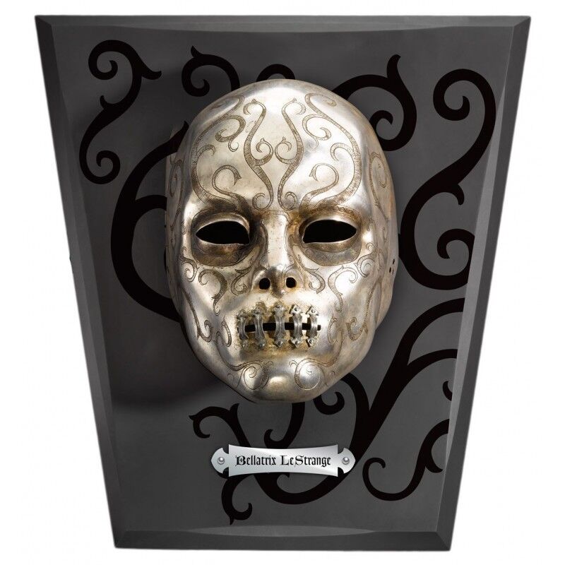 Noble Collection Presenta esta replica de la mascara de Bellatrix LeStrange Vista en la saga de películas de Harry Potter mide 23x16 y esta hecha en PVC de calidad, viene en una caja mostrador en madera