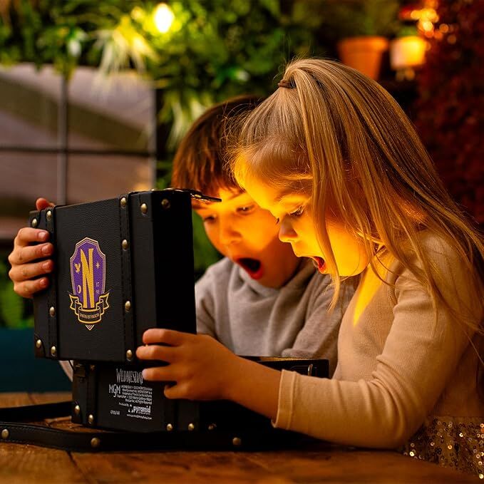 Los materiales están orientados a un uso práctico en el día a día, mientras que el formato baúl añade valor decorativo y facilita la organización de los distintos componentes. Es una opción ideal para fans que desean incorporar la estética de Miércoles en su rutina diaria de estudio o trabajo.