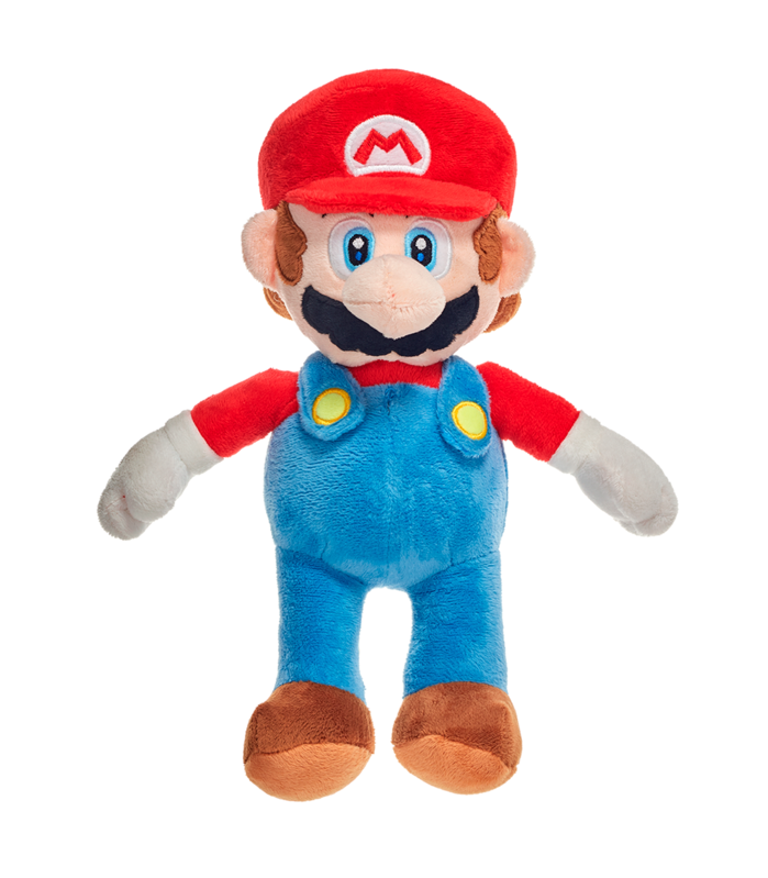Incluye figuras como Mario, Luigi, Yoshi y Toad en estilo compacto, con acabados bordados y felpa resistente.