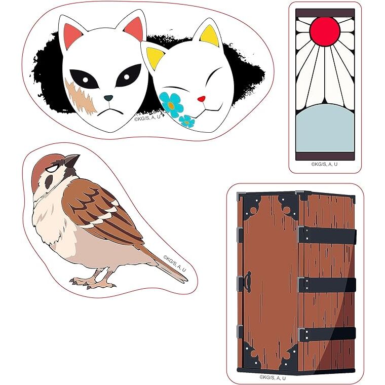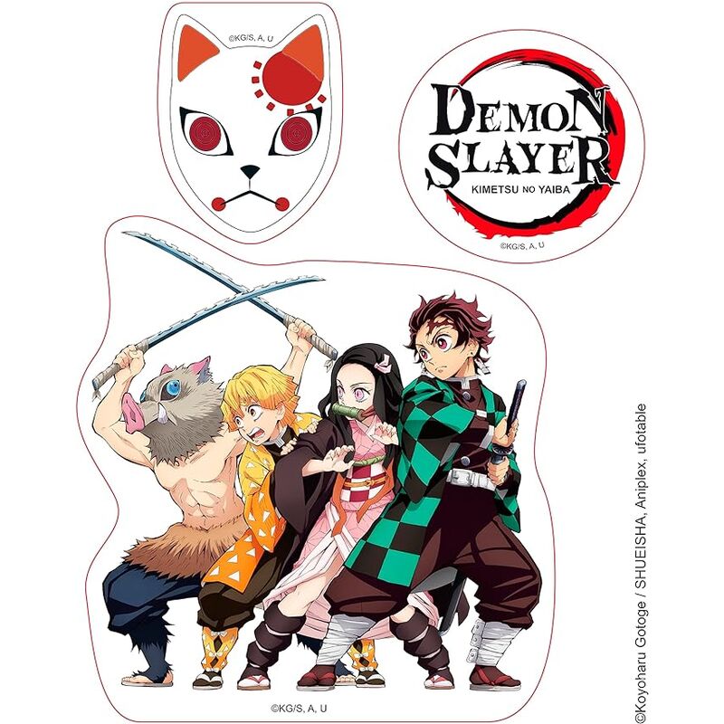 Set de vaso decorativo de Demon Slayer. Incluye vaso, figura acrílica y hoja de pegatinas con personajes del anime.