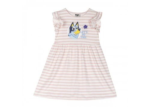 El vestido Bluey Rosa integra la estética alegre de la serie Bluey en una prenda ligera pensada para el uso cotidiano. Su diseño incorpora ilustraciones reconocibles del personaje sobre una base rosa que refuerza su identidad visual.